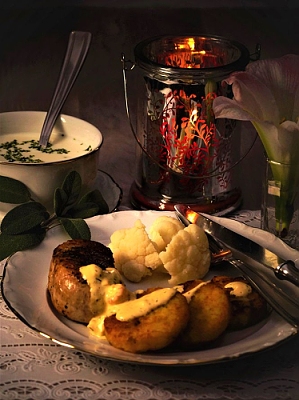 Zubereitung: Das heutige Gericht ist superschnell zubereitet und trotzdem raffiniert. Hollandaise erwärmen, 2 El Krebssuppenpaste unterrühren und warmhalten Die Medaillons flach drücken, salzen und pfeffern und im heißen Öl kräftig anbraten. Im 150 °C vorgeheitztem Ofen warmhalten Kartoffeltaler und Gemüse nach Packungsvorschrift zubereiten. Medaillons auf Tellern anrichten und mit der Hollandaise überziehen. Das Gemüse und die Kartoffeltaler dazu servieren . Lotte und Heinz Günter wünschen Ihnen einen angenehmen Appetit.